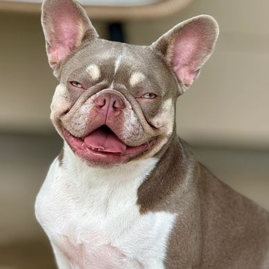 Love is my 2nd female from Wayne French Bulldogs. I knew from day 1 I had to have her. She is stunning. She has one of the best faces, just the right amount of squish. She has beautiful blue green eyes. Trindle markings in Lilac, Fawn, and a dash of Blue. She is smart as a whip, loves to play and is the best snuggler. Her mother, Calypso, comes from the Ukraine, and her father is Mr. Marvelous of Wayne French Bulldogs. 6 panel health cleared